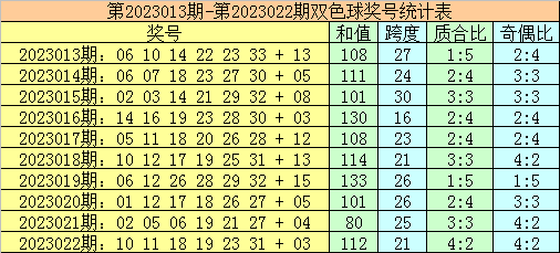 上期总结:福彩双色球第2023022期开出奖号:10 11 18 19 23 31 + 03,红球三区比2:2:2,奇偶比为4:2。