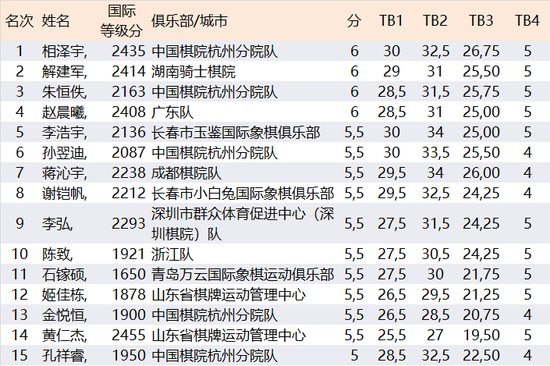 积分榜上,李浩宇、孙翌迪等9位棋手积5.5分,而再后的5分棋手多达18位。