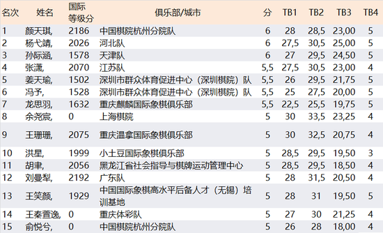 女子组比男人组更为刺激,前五台有四台分出输赢,其中孙际涵投诚王珊珊,令东说念主关心;此外,颜天琪、杨弋靖和尤念念羽也拿下一场得胜。张潇和姜天瑜弈和,也因此失去了异常位置。于是,颜天琪和孙际涵取代了张潇和王珊珊,和杨弋靖构成了女子组“新三强”。