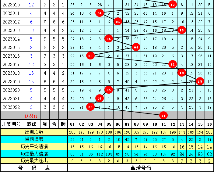 江维双色球第2023023期012路分析:最近20期红球012路比为37:40:43,最近两周红球012路比为11:11:14,上期红球012路比为1:3:2。