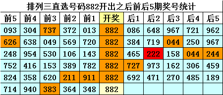 四、胪列三直选号码882历史上开出6次,皇冠现金官网APP下载其前后五期奖号别离为: